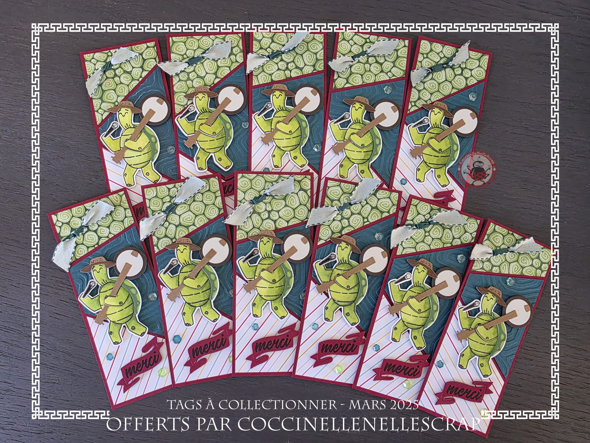 Je vous présente les tags à collectionner accompagnant mon cadeau de remerciement que j’ai offerts aux clientes qui m’ont passé une commande au mois de mars dernier.