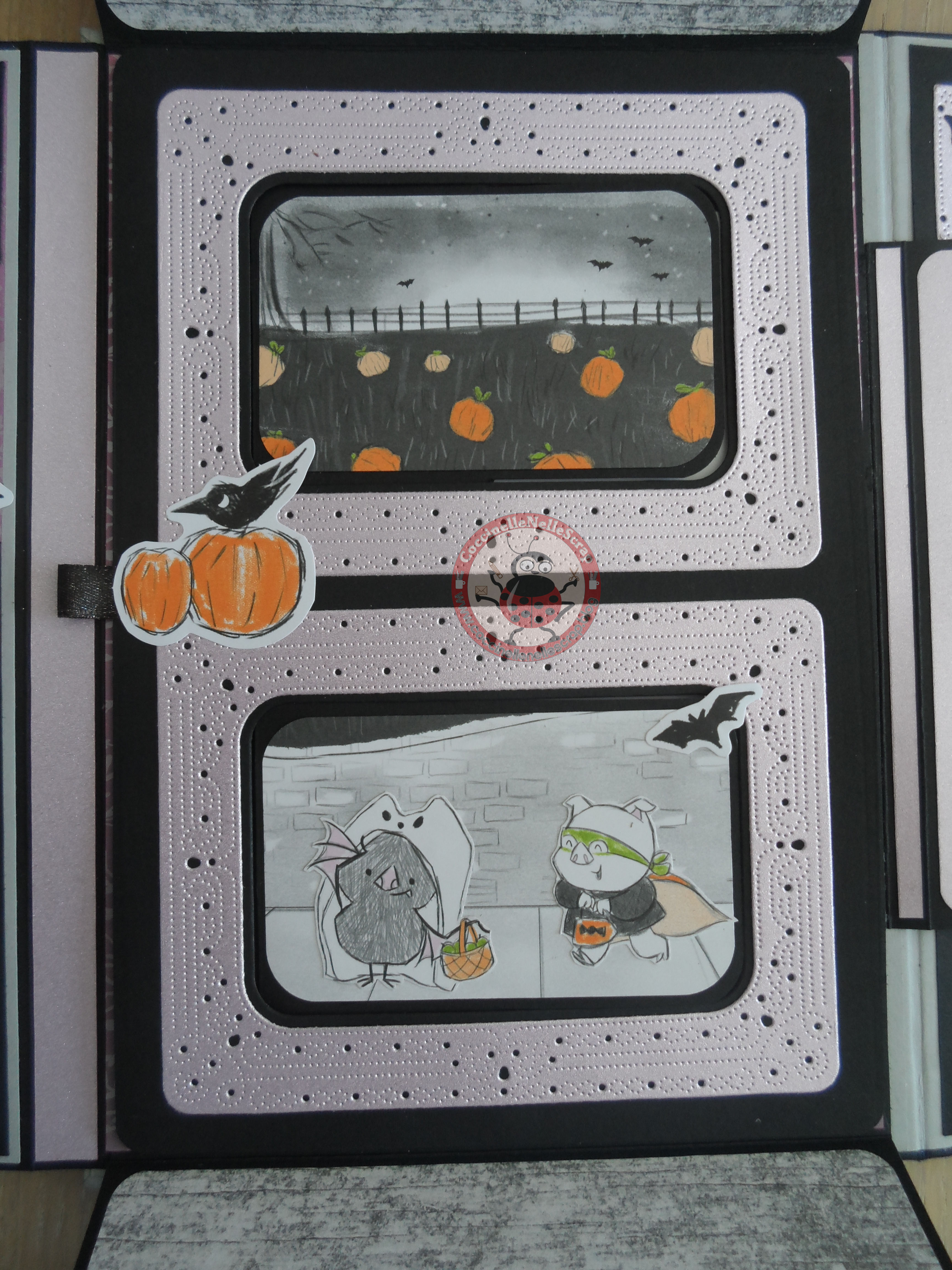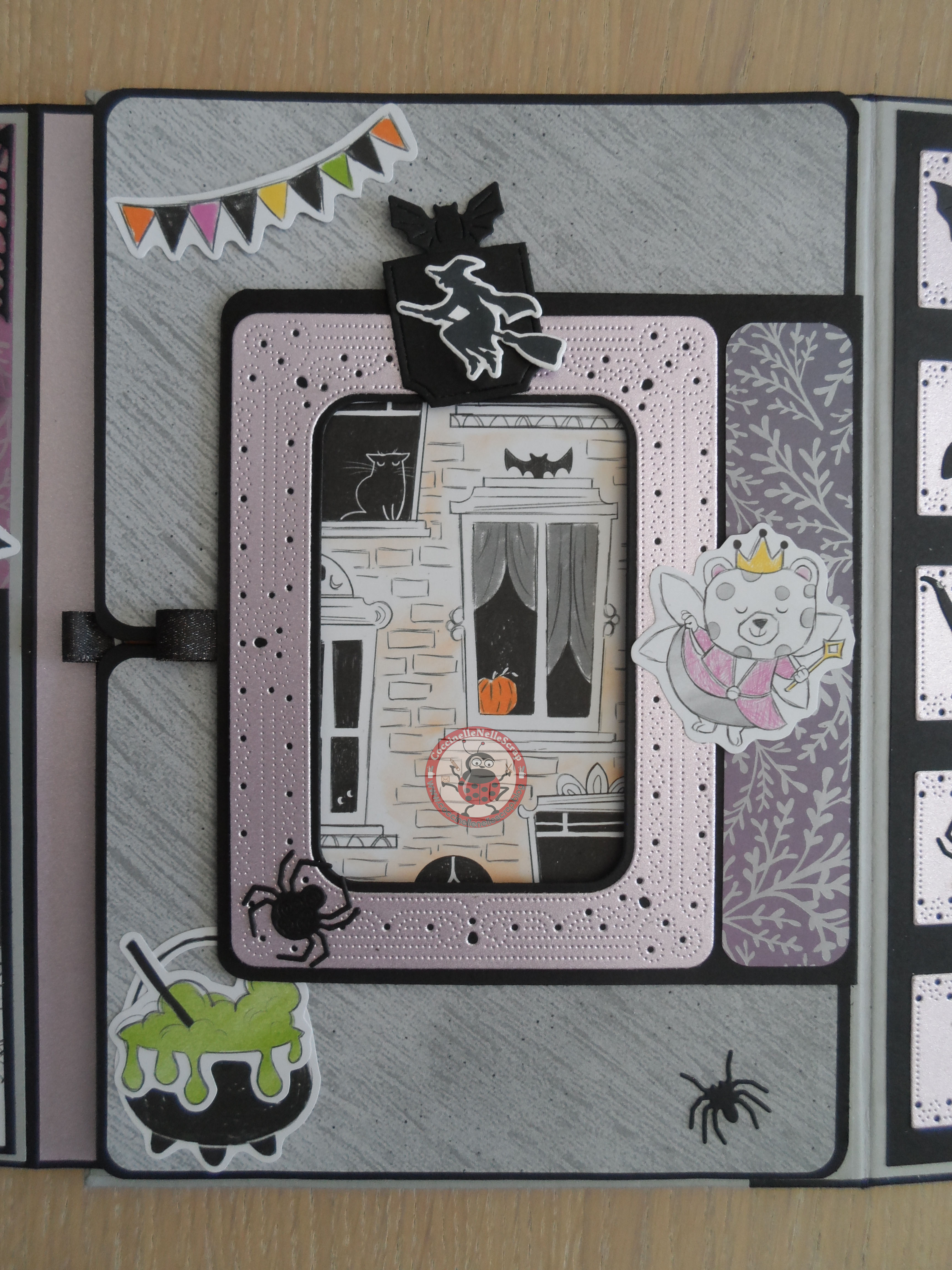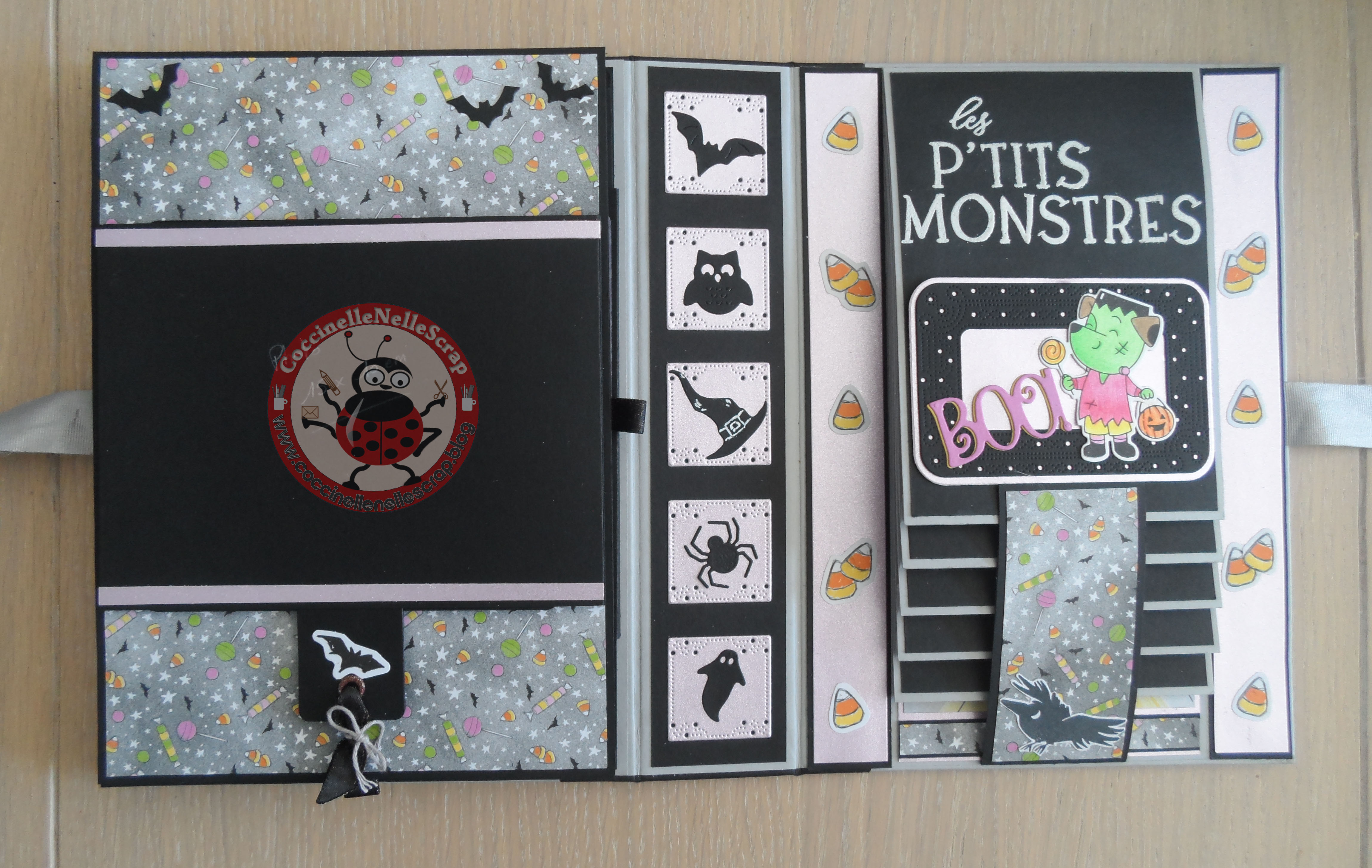 Confectionné sur le même modèle que le mini-album PopUp Poires & Tournesols, je vous présente la version Halloween que j’ai créée avec beaucoup de plaisir.