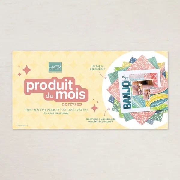 Comme chaque mois depuis décembre dernier, vous pouvez acheter le Produit du mois pour seulement 6 € lorsque vos achats atteignent 90 € ou plus, dans une commande unique. Ce mois-ci le produit du mois est un lot de 12 feuilles (3 de chacun des 4 motifs) de papier design 12″x12″. Ce papier Illusions au pinceau est en stock limité et ne reviendra plus après épuisement du stock.
