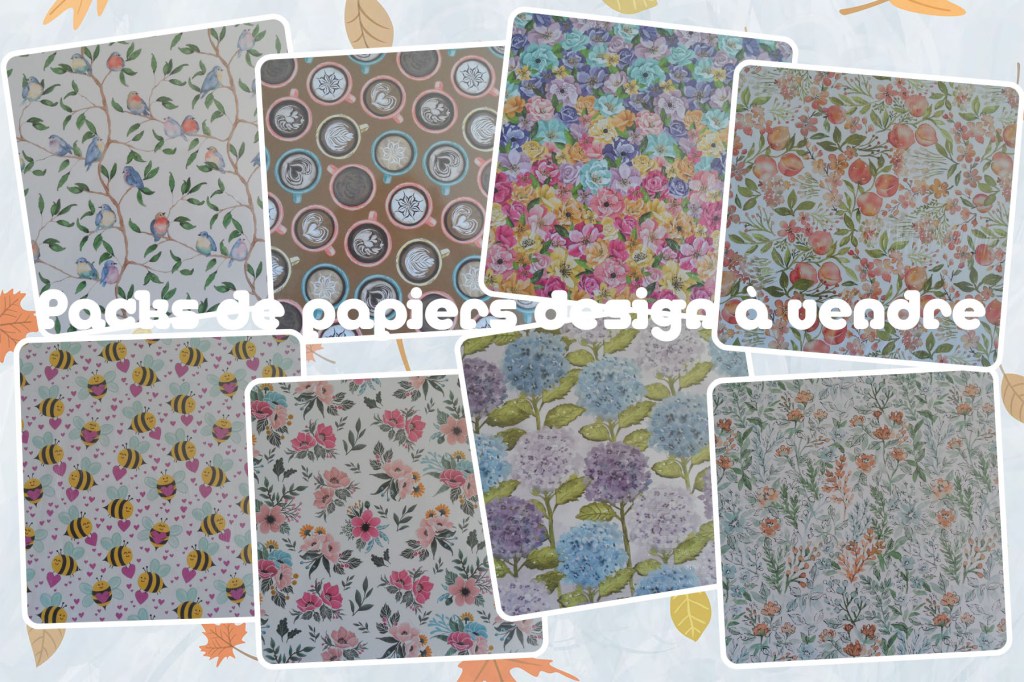 Tous les packs de papiers sont neufs, sous blister, au format 12″x12″. Un pack contient 12 feuilles recto/verso dans 6 motifs différents.