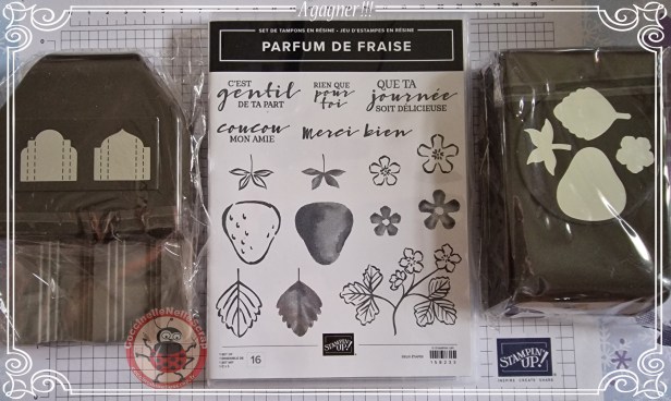 Comme j’en ai fait part dans ma vidéo-tuto du 24 avril 2022, j’offrirai par tirage au sort, à l’une d’entre mes clientes qui aura passé une ou plusieurs commandes de 40€ minimum (hors frais de port) auprès de moi dans le courant du mois d’avril (entre le 1er et le 31 avril 2022), ce lot composé d’un set de tampons Parfum de fraise et des perforatrices Ma fraise et Forme au choix Joyaux d’étiquettes.