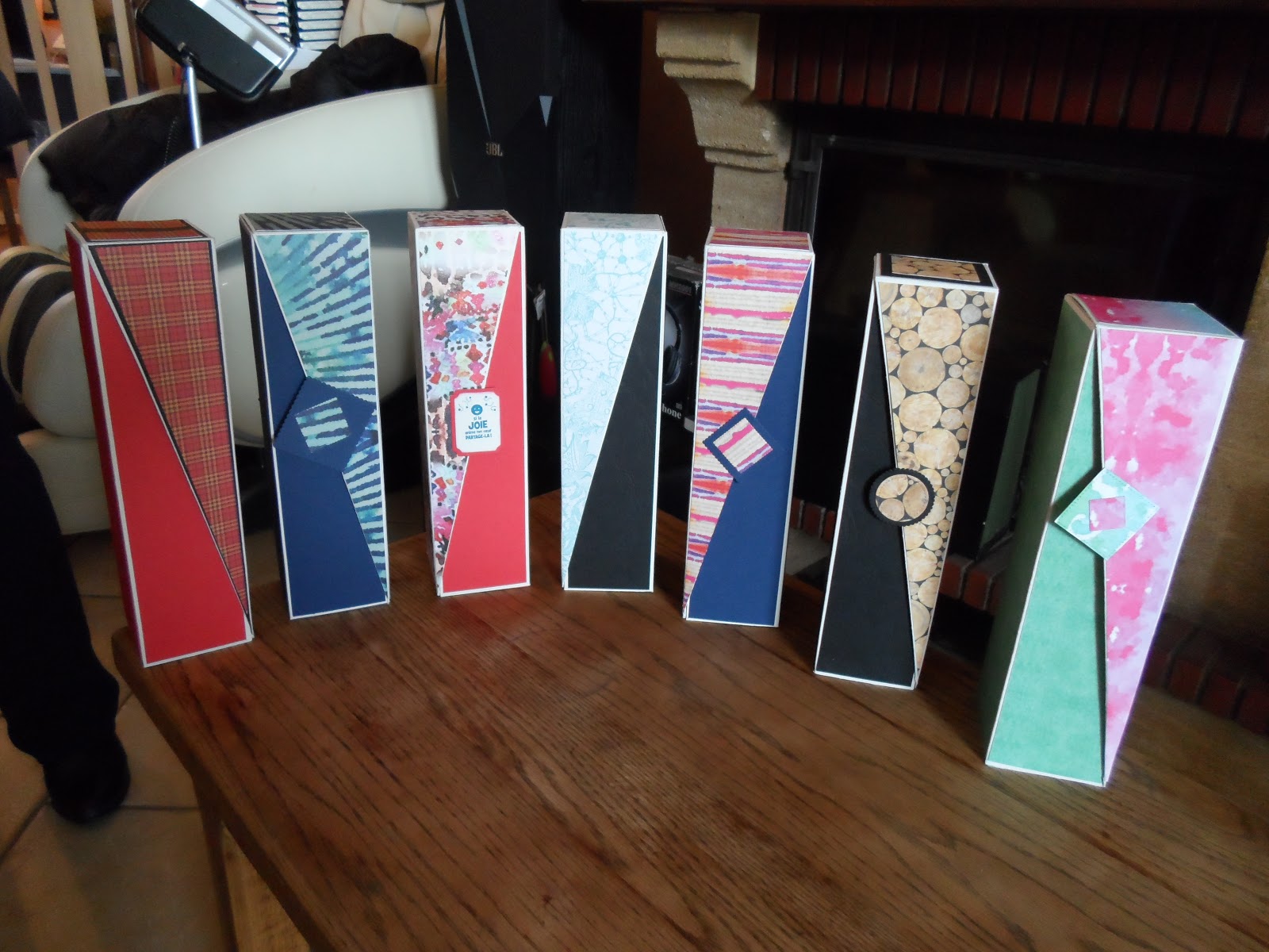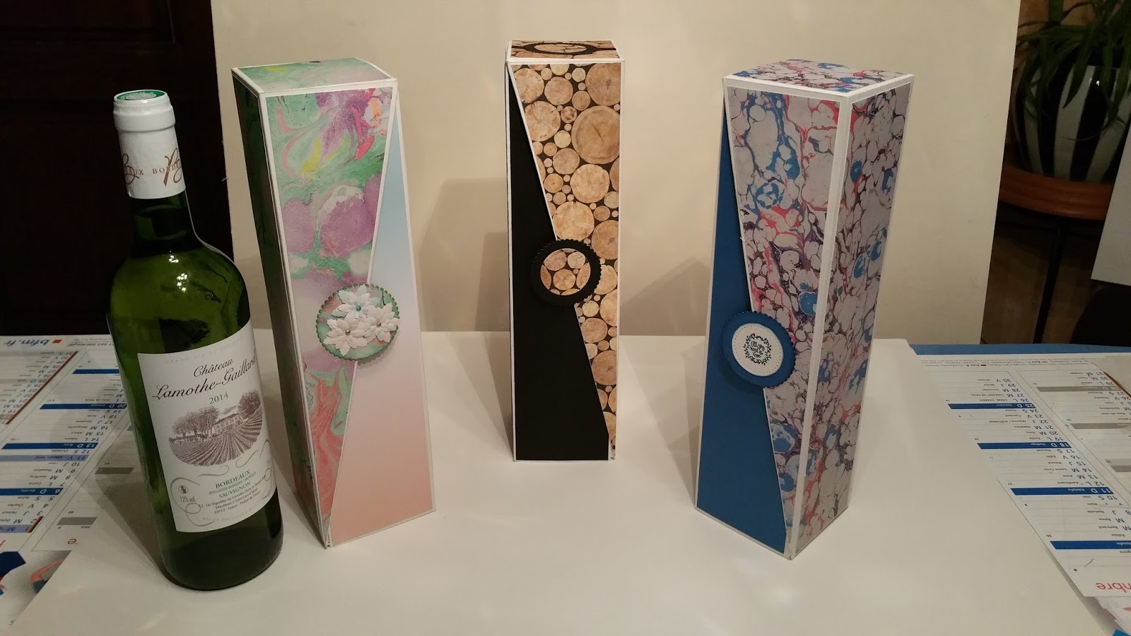 Sur la base des \ »boîtes ourson\ », j\’ai organisé deux ateliers \ »Coffret pour bouteille de vin\ ».