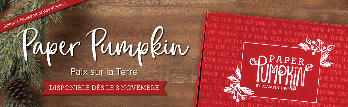 La box Paper Pumpkin \ »Paix sur la Terre\ » est un kit des fêtes exclusif disponible à partir du 3 novembre et jusqu\’à épuisement des stocks.