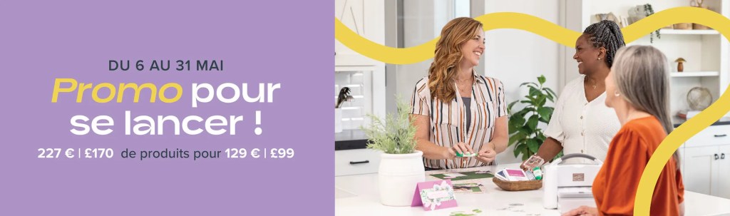 Du 6 au 31 mai, toute personne qui signe pour se lancer dans l’aventure Stampin’Up! peut obtenir des fournitures de lancement d’une valeur de 227€ en produits pour seulement 129€ !