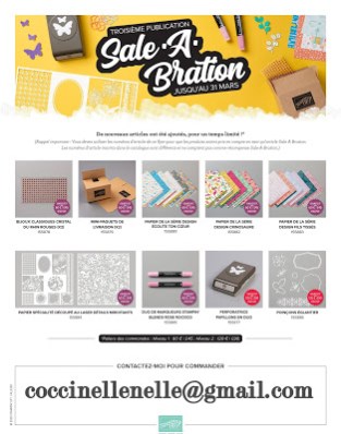Set de tampons, papier, kit pour cartes, poinçons… découvrez tous ces produits dans la brochure Sale-A-Bration et sur le flyer de la troisième publication qui propose des articles provenant des catalogues en vigueur.