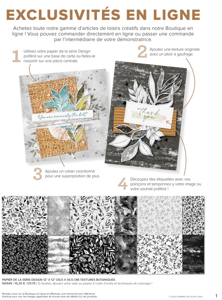 Depuis quelques temps déjà, Stampin’Up! propose tous les deux mois une série de nouveautés visibles uniquement en ligne. Ces produits ont l’avantage d’avoir une durée de vie plus longue que les produits des mini-catalogues.