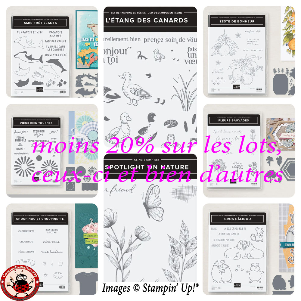 Du 13 au 15 novembre 2024, vous pouvez profiter de 20% sur tous les lots du catalogue annuel contenant des tampons, et sur les papiers de la série design ainsi que 10% de réduction sur certaines encres et une sélection de papier cartonné du catalogue annuel 2024/2025.
