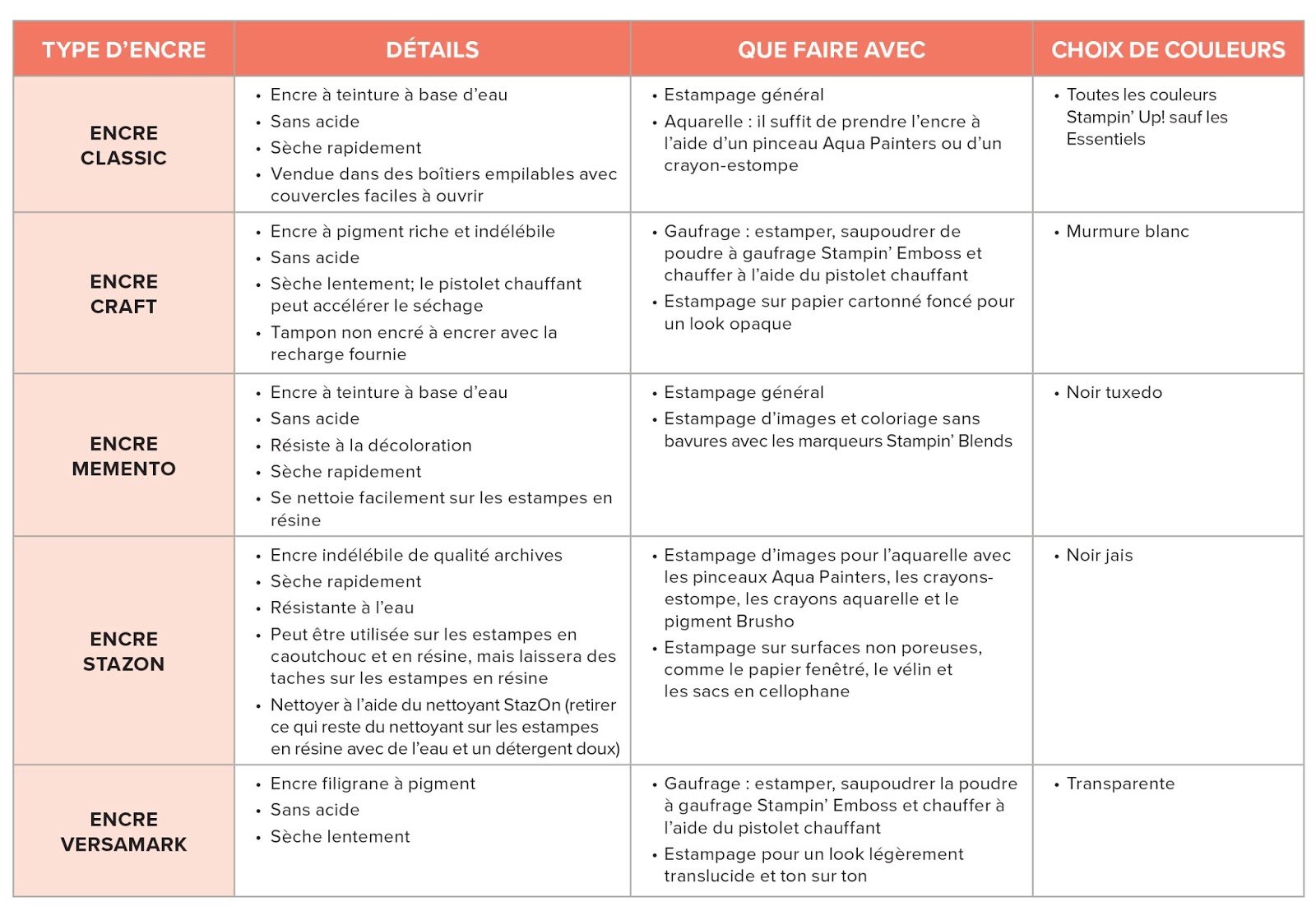 Pour ne plus vous poser la question de savoir quelle encre utilisée pour vos projets, voici un tableau que vous pouvez télécharger ICI qui vous permettra de vous y retrouver